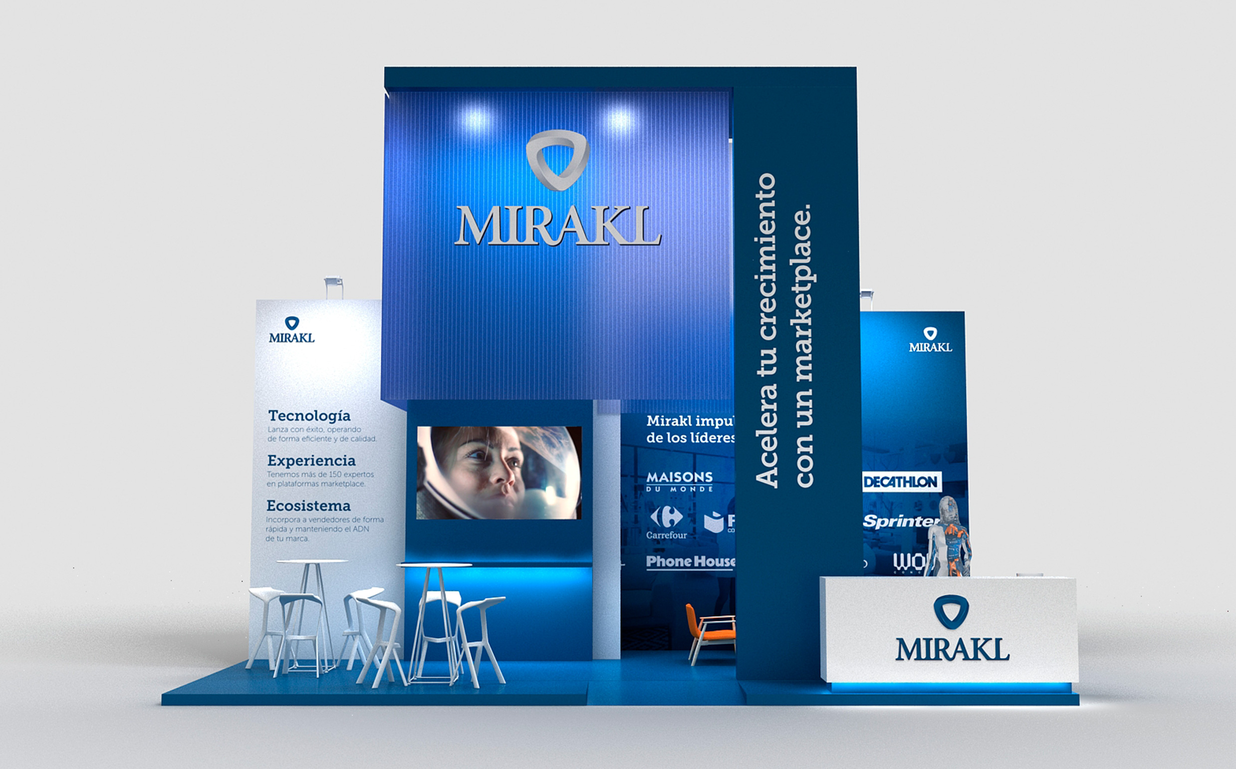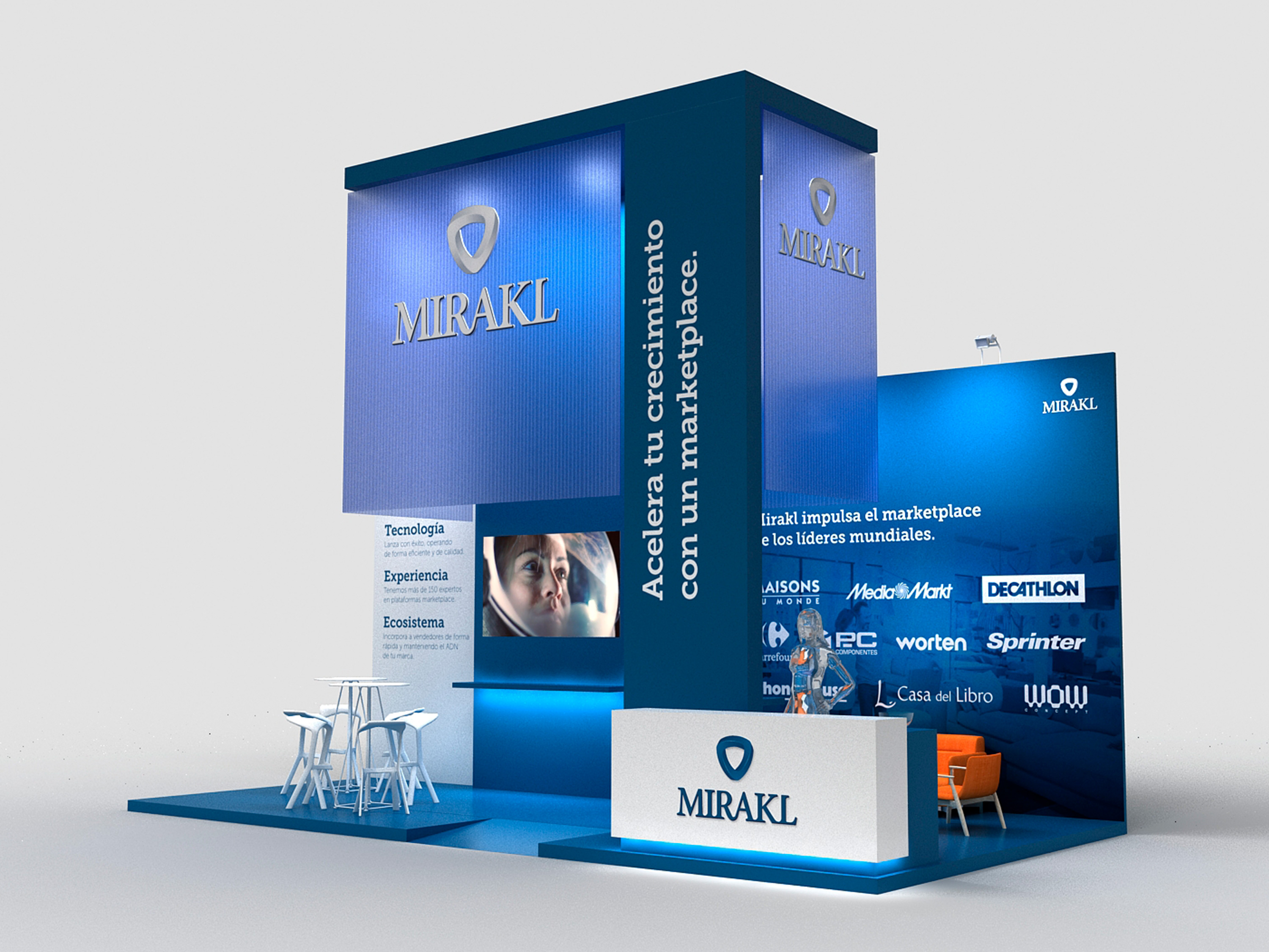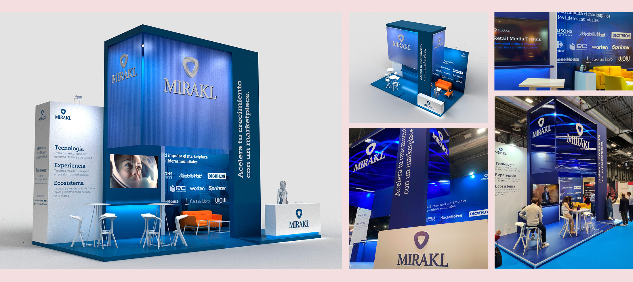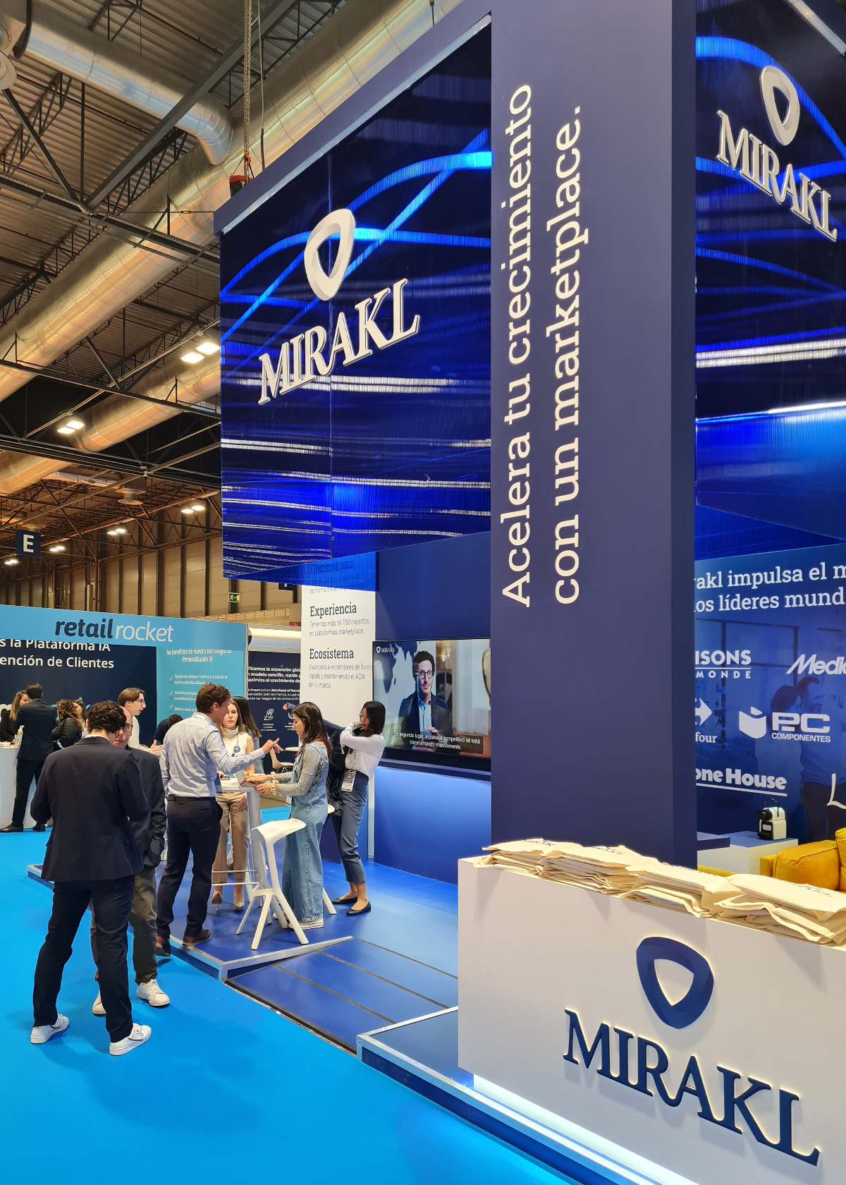 Mirakl es la solución SaaS elegida por empresas líderes de todo el mundo para gestionar su mercado de terceros y su negocio de dropshipping. Su tecnología impulsa un crecimiento digital rentable en todos los ángulos del comercio. Y ellos nos eligieron a nosotros para el diseño y construcción del stand con el que tuvieron presencia en la feria E-show de celebrada en Madrid.
