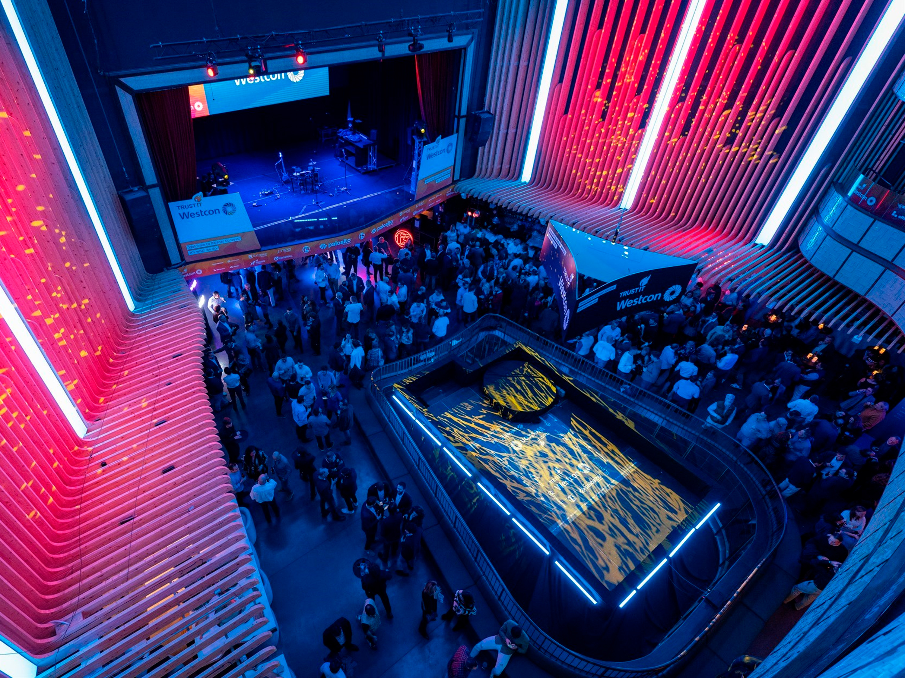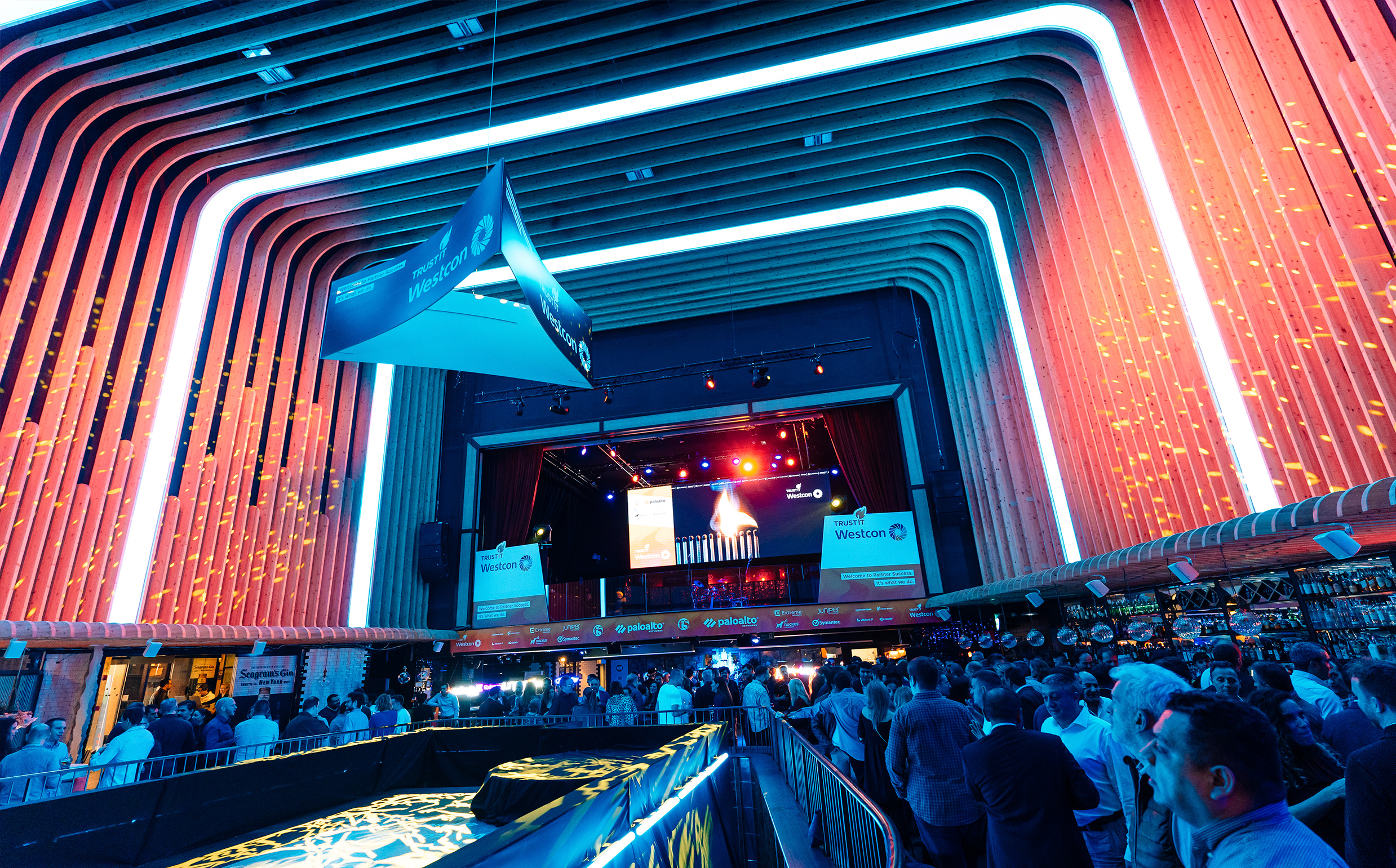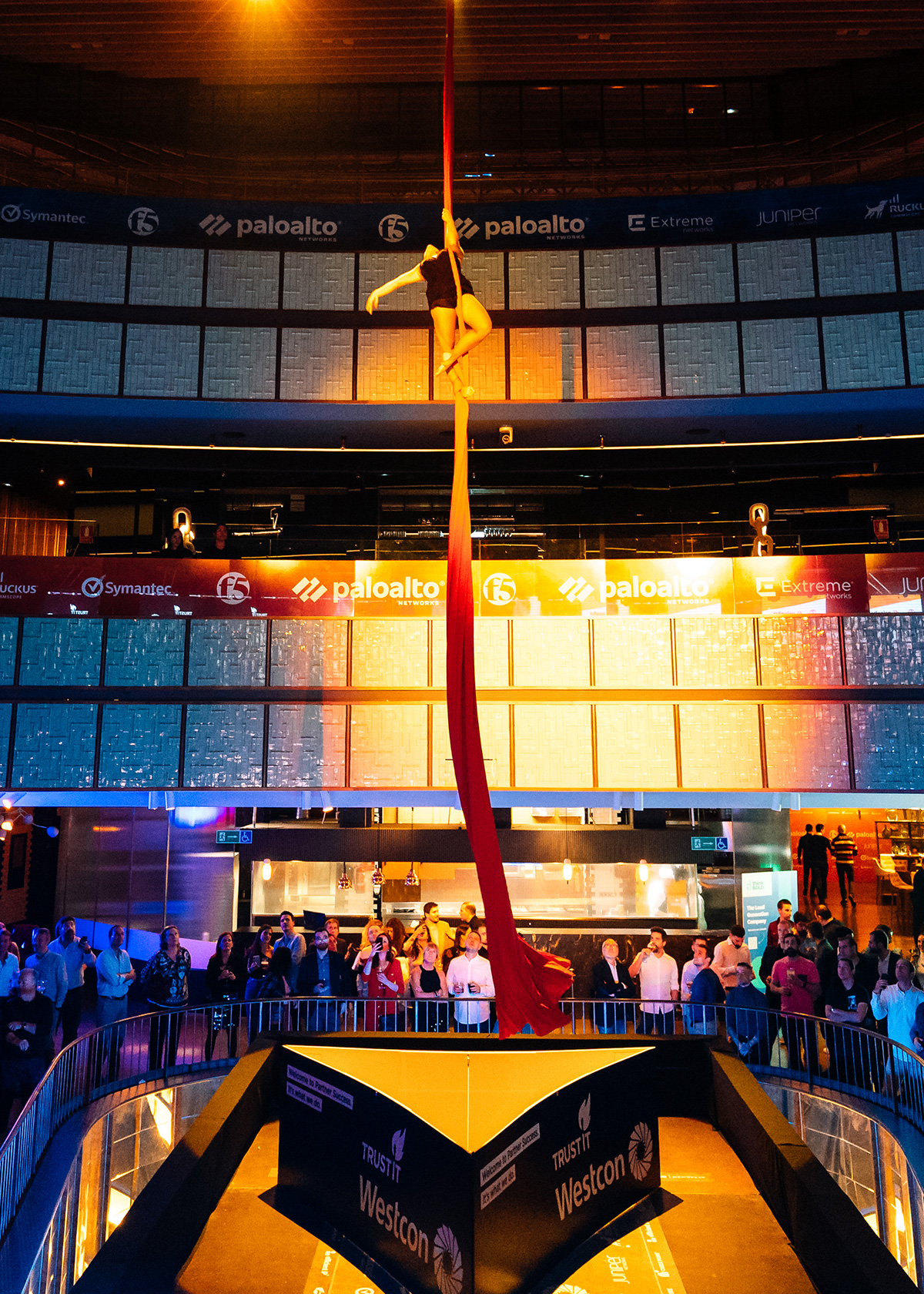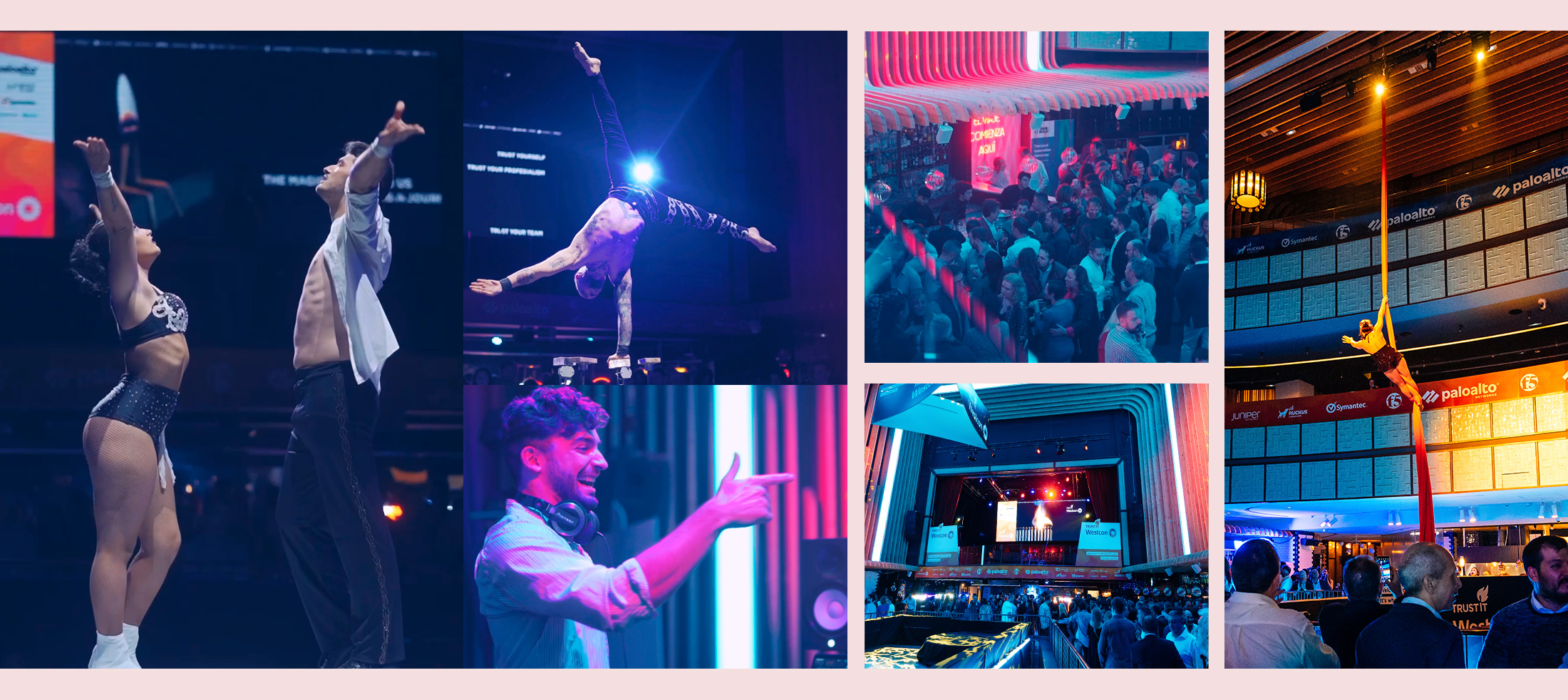 Organizamos el evento anual de Westcon para sus partners en España. Y qué evento! Bien de copas, bien de luces de neón… y brilli-brilli, si estuviste ya sabes de lo que hablamos. Un grupazo tocando en directo, acróbatas y patinadores merecedores de Got Talent, y un show de telas aéreas. Sí, sí, como lo oyes! Para caerte de culo.